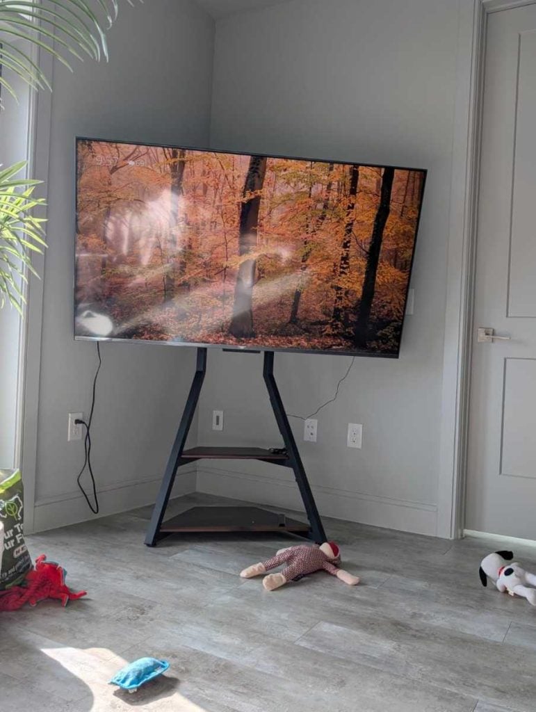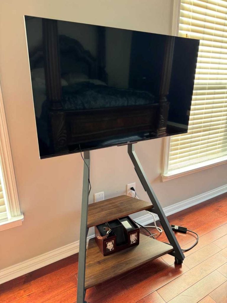 This isn’t one of those clunky metal poles you’d see in a classroom. Modern floor stands are clean and minimalist. From a distance, it actually looks like your TV is mounted — just floating slightly in front of the wall.
