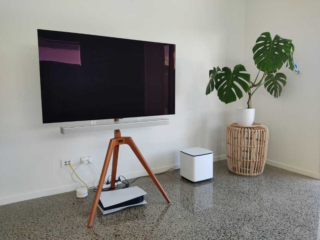 A floor stand lets you position your TV exactly where it makes sense — even slightly away from the wall or behind a sofa.